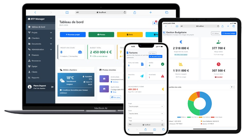 Vous êtes un particulier et vous êtes un professionnel du BTP. Vous pouvez Gérer vos projets de construction ou rénovation, projet par projet en toute sérénité du début à la fin de vos travaux.